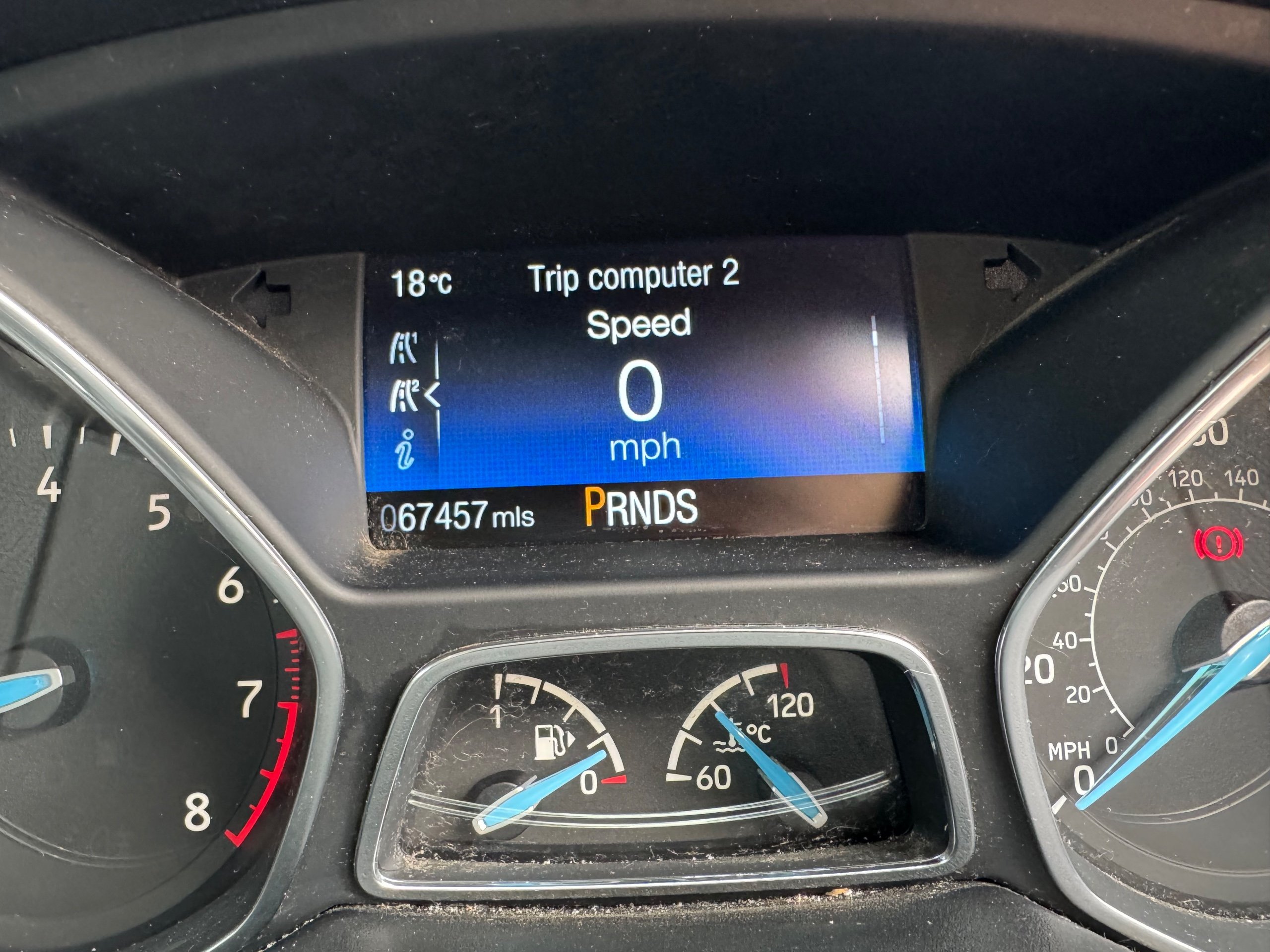 Equipped with Ford’s Active City Stop, ABS with EBD, ESP with traction control, hill start assist, tyre pressure monitoring, front, side, and curtain airbags, ISOFIX child seat mounts, and a Thatcham Cat.1 alarm with remote central double locking, this Focus offers peace of mind on every journey.